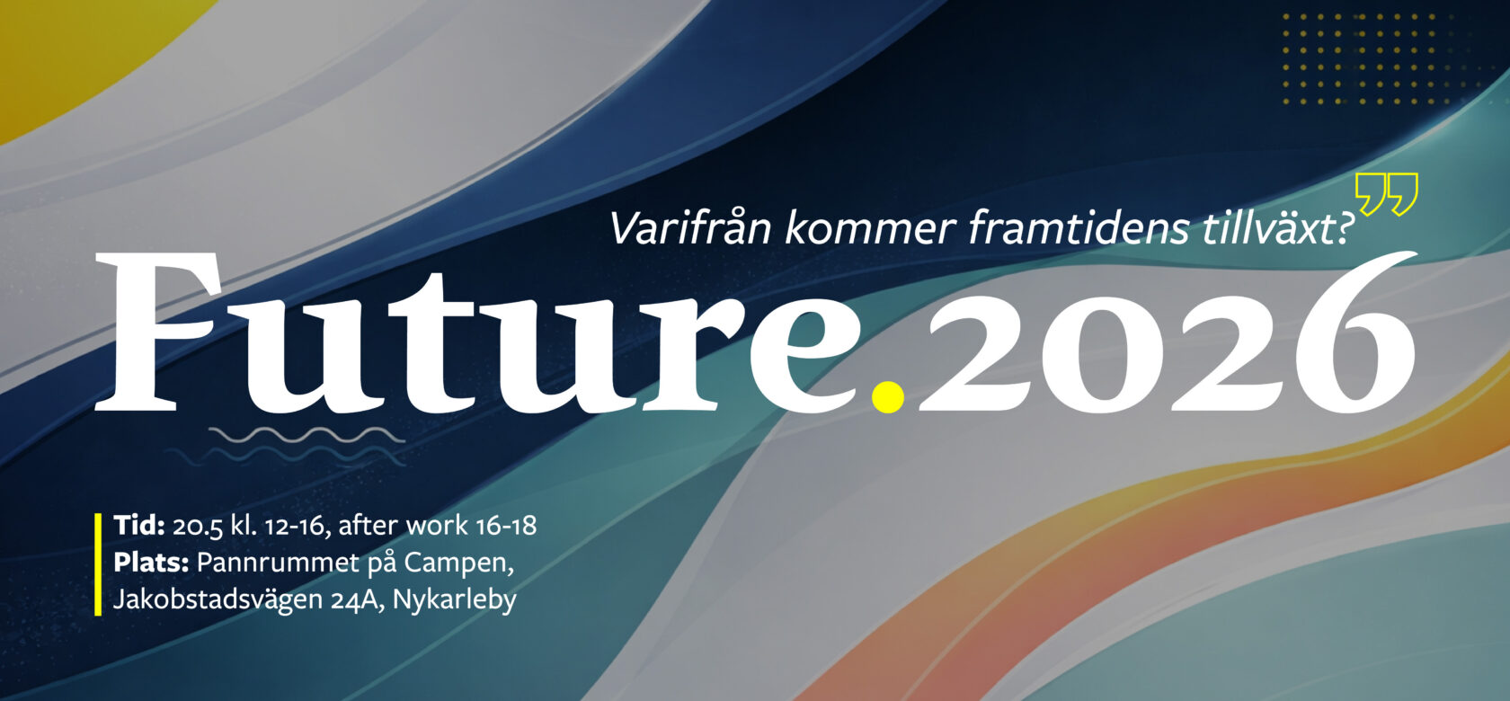 Den 20.5 arrangerar Concordia ett framtidsseminarium med fokus på tillväxt i högaktuella frågor för näringslivet i Jakobstadsregionen – både i ett nuläges- och framtidsperspektiv. Kom och ta del av den senaste informationen från experter och företag som delar med sig av sina framgångscase, med konkreta insikter du kan använda för att utveckla ditt eget företag eller stöda företagens tillväxt från ditt perspektiv.