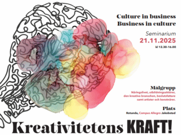 Datum: Fredagen den 21.11.2025 kl. 12.30-16.00Plats: Rotundan, Campus Allegro JakobstadMålgrupp: näringslivet, utbildningsaktörer, den kreativa branschen, beslutsfattare samt artister och konstnärer. Anmäl dig här! Välkommen till en dag fylld av inspiration