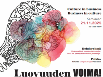 Päivämäärä: 21.11.2025 klo 12.30-16.00Paikka: Rotunda, Campus Allegro Jakobstad/PietarsaariKohderyhmä: elinkeinoelämä, koulutusalan toimijat, luova ala, päättäjät sekä artistit ja taiteilijat. Ilmoittautuminen Tervetuloa inspiroivaan päivään Campus Allegroon! Kansainväliset pääpuhujat, keskustelut ja case-esimerkit näyttävät,