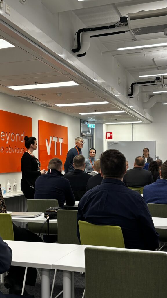 Besöket hos VTT i Hervanta gav ett konkret exempel på hur forskningsorganisationer kan fungera som förlängda FoU-avdelningar för SME-företag. Med över 2 300 anställda, 130 forskargrupper och 22 olika forskningsmiljöer har VTT en bred kompetensbas att utgå ifrån.